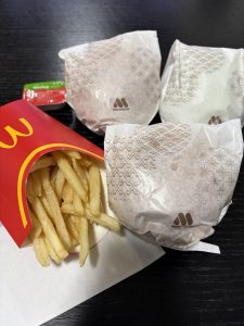 サイドなしでバーガーだけ3個買う奴なんているのか?と罪悪感も持ちつつ。