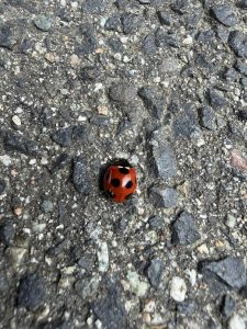 ふと足元を見たら、真っ赤なてんとう虫。