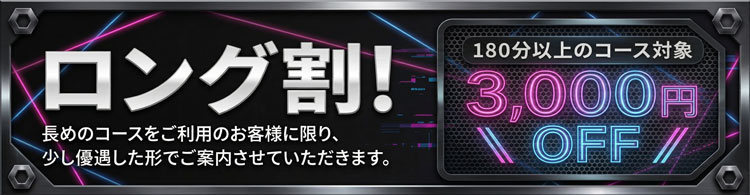 180分以上のコースが対象で、3,000円OFFでのご案内となります。